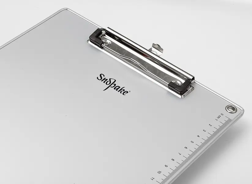 formát A4 • pevný a lehký recyklovatelný materiál tloušťky 2,5 mm s kovovým rámečkem • silný kovový klip s pogumovanými rohy • ergonomický design • pravítko na okraji desky (cm a palce) • záruka 5 let