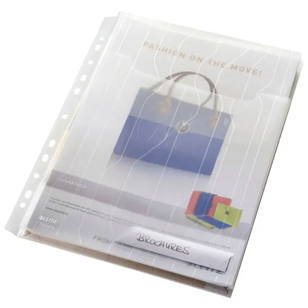 formát A4 • kapacita až 150 listů papíru 80 g • kombinace rozšiřitelných kapes a desek • materiál embosovaný polypropylen • skrývatelná multiperforace • chlopeň pro ochranu vloženého dokumentu • snadný přístup k dokumentům • štítek pro identifikaci