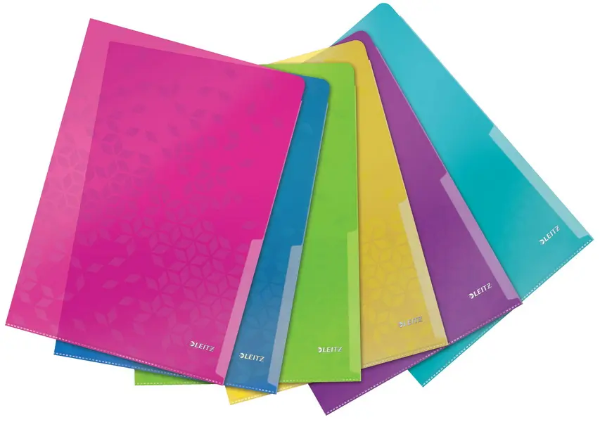 formát A4 • materiál pevný polypropylen 200 mic. • otevřené z boku a shora • vykrojené pro snazší manipulaci s dokumenty • trendy design řady Leitz WOW • mix barev • 6 ks v balení