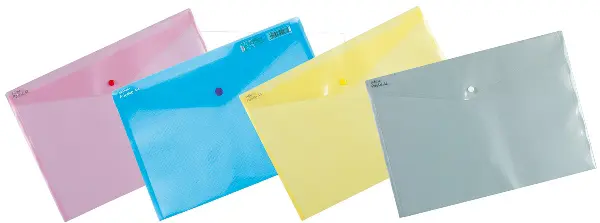 zavírání na druk v barvě kapsy • pevný a odolný materiál PP s reliéfem o tloušťce 200 mic. (recyklovatelný) • dvojité svařované švy • jedinečný systém popisování kapes - jmenovkové proužky • mix barev: modrá, žlutá, zelená, červená, čirá • kapacita 1