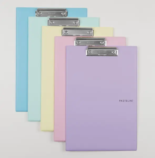 materiál extra pevná lepenka 2,5 mm potažená plastem • kovový klip • pastelové barvy