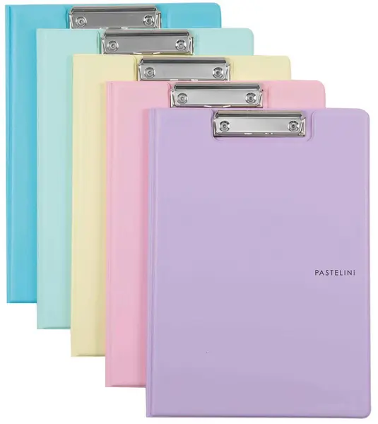 materiál extra pevná lepenka 2,5 mm potažená plastem • kovový klip • pastelové barvy