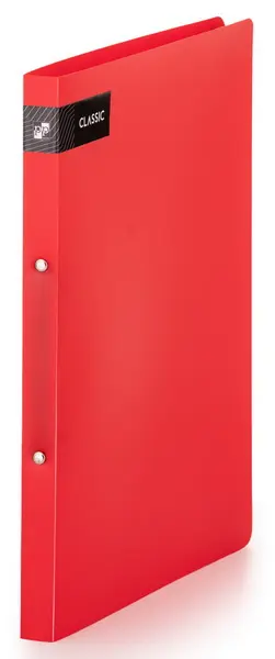 formát A4 • šíře hřbetu 20 mm • kapacita 70 listů • kroužková mechanika • průměr kroužků 15 mm • materiál neprůhledný polypropylen 600 mic. • vhodný pro reklamní potisk • barva: červená • počet kroužků: 2