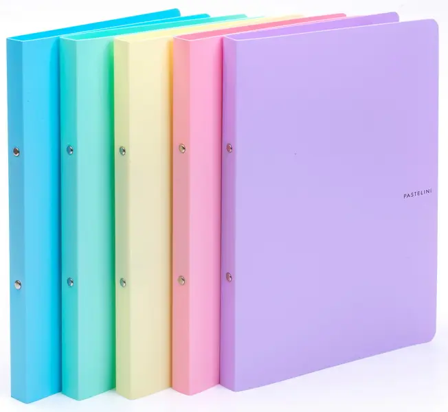 formát A4 • šíře hřbetu 20 mm • kapacita 70 listů • průměr kroužků 15 mm • materiál polypropylen 600 mic. • kroužková mechanika • pastelové barvy