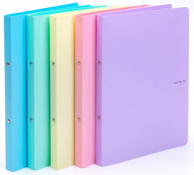 formát A4 • šíře hřbetu 20 mm • kapacita 70 listů • průměr kroužků 15 mm • materiál polypropylen 600 mic. • kroužková mechanika • pastelové barvy