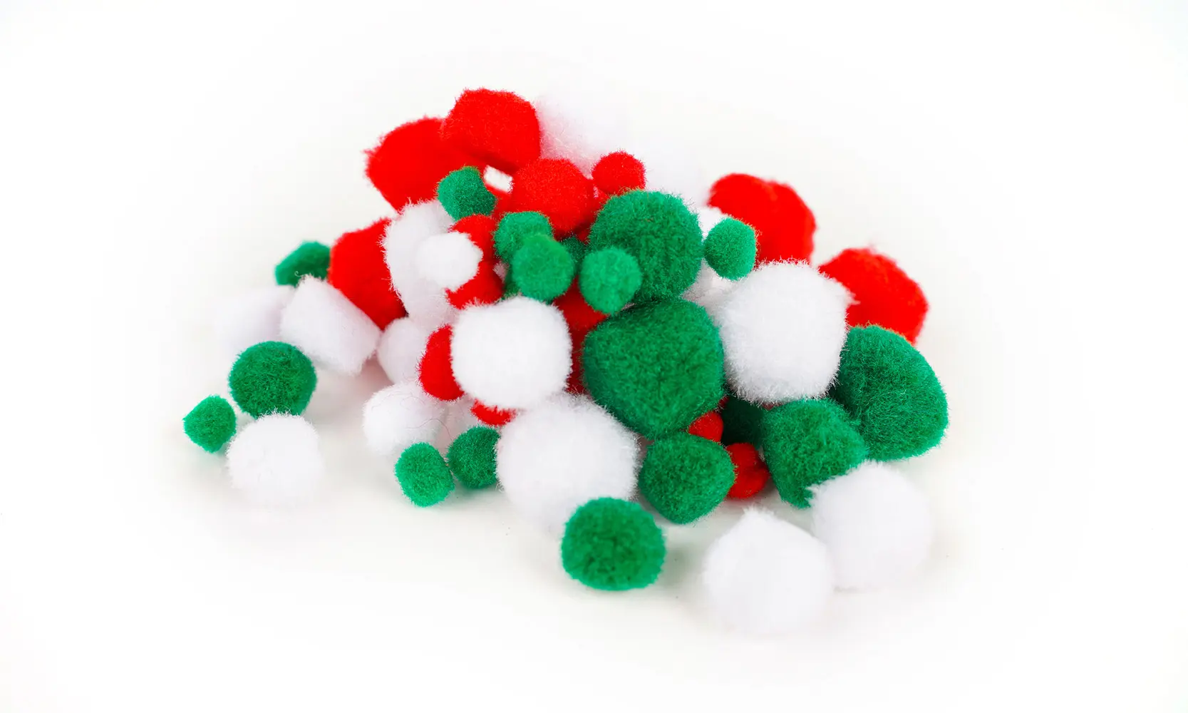 mix barevných a různě velkých chlupatých kuliček pro výrobu figurek či jinou dekoraci, 60 ks v balení