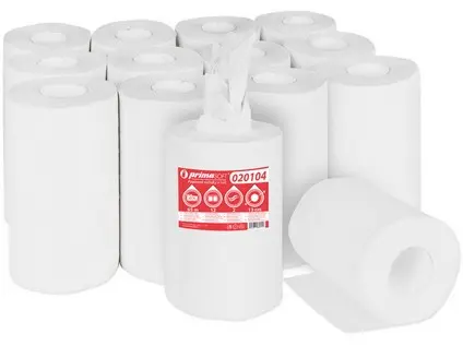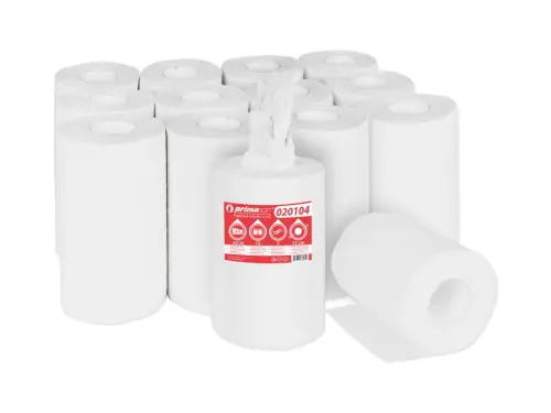 pro zásobníky se středovým odvíjením • dvouvrstvé • celulóza • extra bílé • výška role 19,5 cm • délka útržku 24 cm