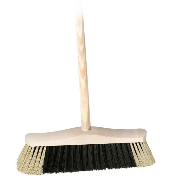 délka hole 120 cm • syntetická vlákna • plastové provedení: kovová hůl s plastovým potahem, plastové těleso ve 3 barvách (červená, modrá a hnědá) • dřevěné provedení: hůl i těleso z nelakovaného dřeva