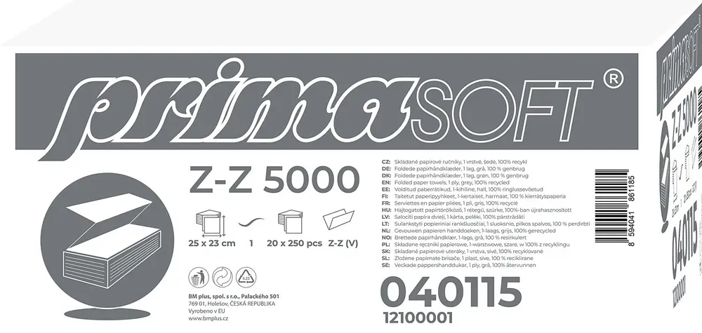 jednovrstvé • recyklované měkké • vysoká absorpční schopnost • rozměr 25 x 23 cm • 5 000 ks v balení (20 x 250 ručníků)