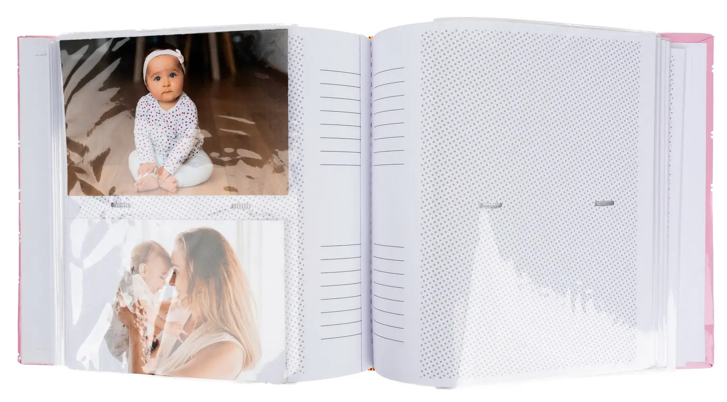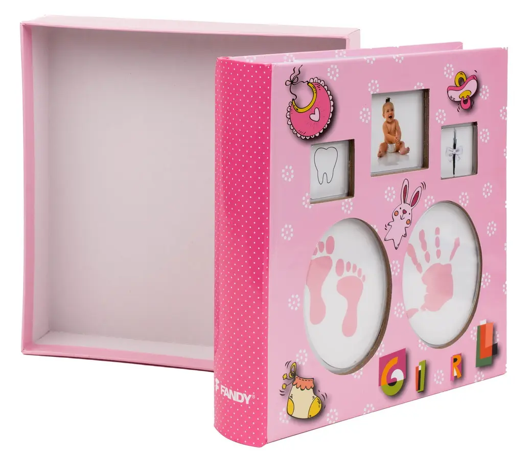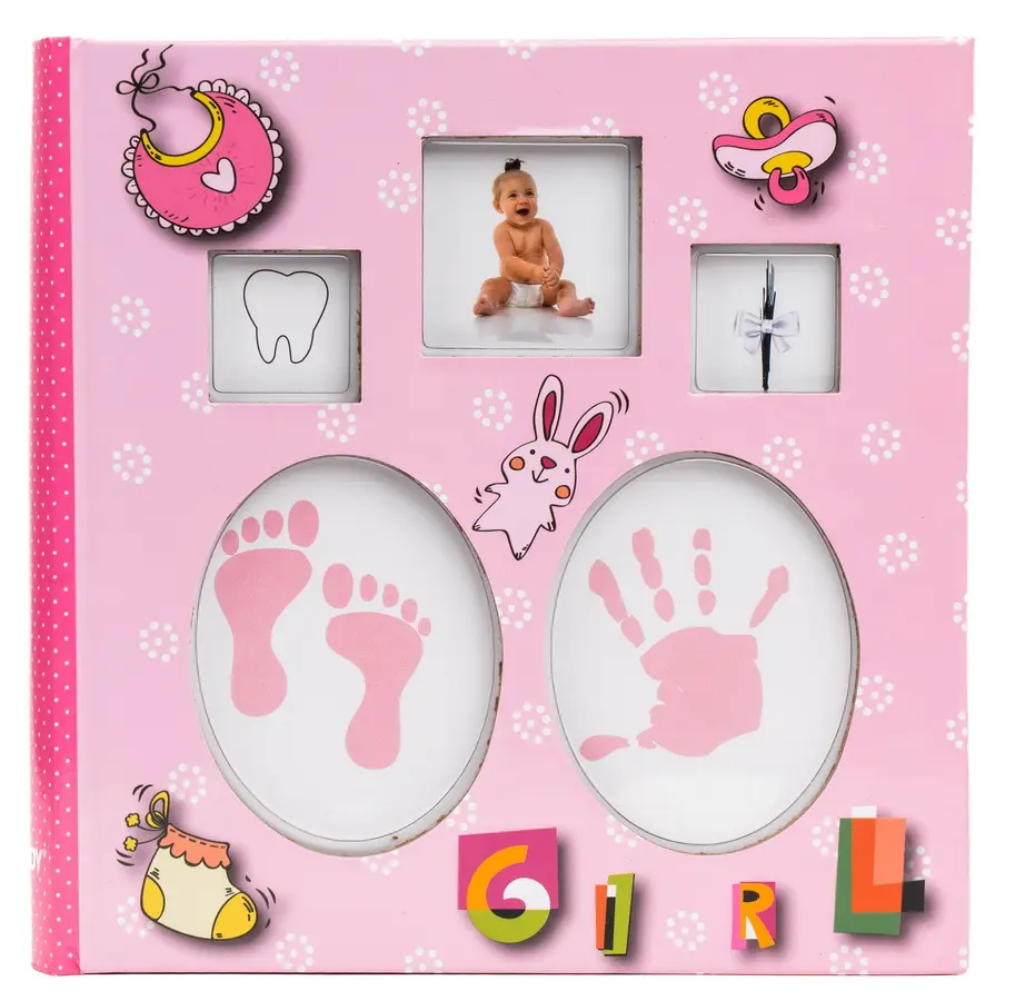 dětské zasunovací fotoalbum, 10x15, 200 foto, 2 foto na stránku, rozměr alba 22 x 22 cm, vyměnitelné foto 5 x 5 cm, místo pro první zoubek, či pramínek vlasů, šitá kniha, dárková krabička