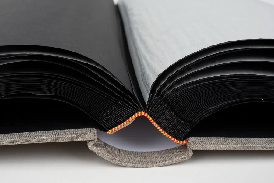 klasické fotoalbum, 100 stran, rozměr alba 31 x 33 cm, rozměr listu 29 x 32 cm, dělící pergamenové listy, černé listy, šitá kniha