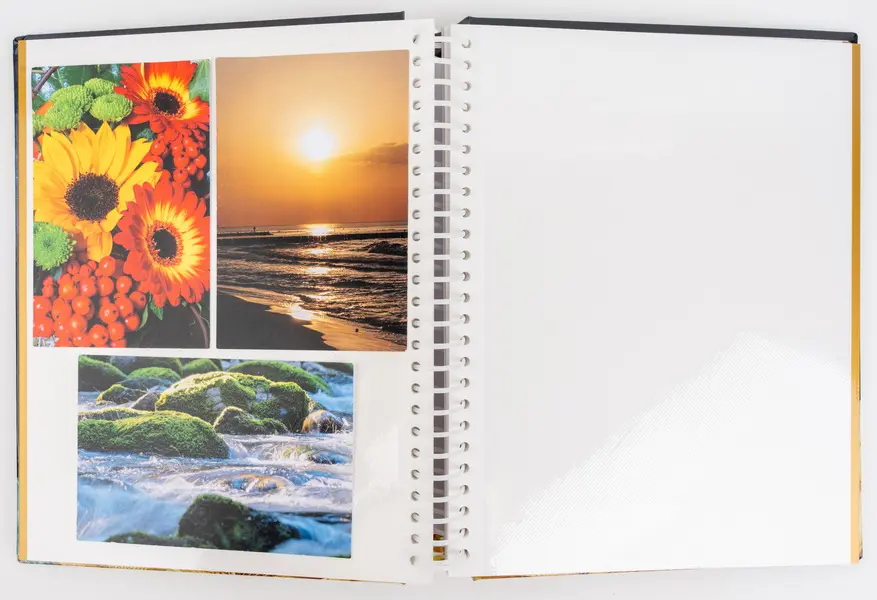 samolepicí fotoalbum, 60 stran, rozměr alba 24,5 x 29 cm, rozměr listu 22,5 x 28 cm, spirálová kniha