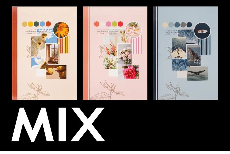 Jedná se o malé a kompaktní zasunovací fotoalbum s měkkými deskami a svařovanou vazbou ve formě sešitku, je ideální pro uchování 24 fotografií formátu 10 x 15 cm, které se vkládají zasouváním, a neumožňuje popisky. Album je dostupné ve třech různých neutrálních motivech (MIX) s pastelovými obálkami (béžová, růžová a modrá), kde každý motiv obsahuje koláž fotografií s tématy přírody, cestování nebo jídla v moderním, "moodboard" stylu. V měkkých deskách můžete vyměnit obálkové karty a přizpůsobit si tak album ještě víc dle vlastní fantazie. Cena je uvedena za 1 kus alba. Pokud Vám záleží na konkrétním motivu (napr. barva obálky), specifikujte jej, prosím, co nejpřesněji v poznámce k objednávce.