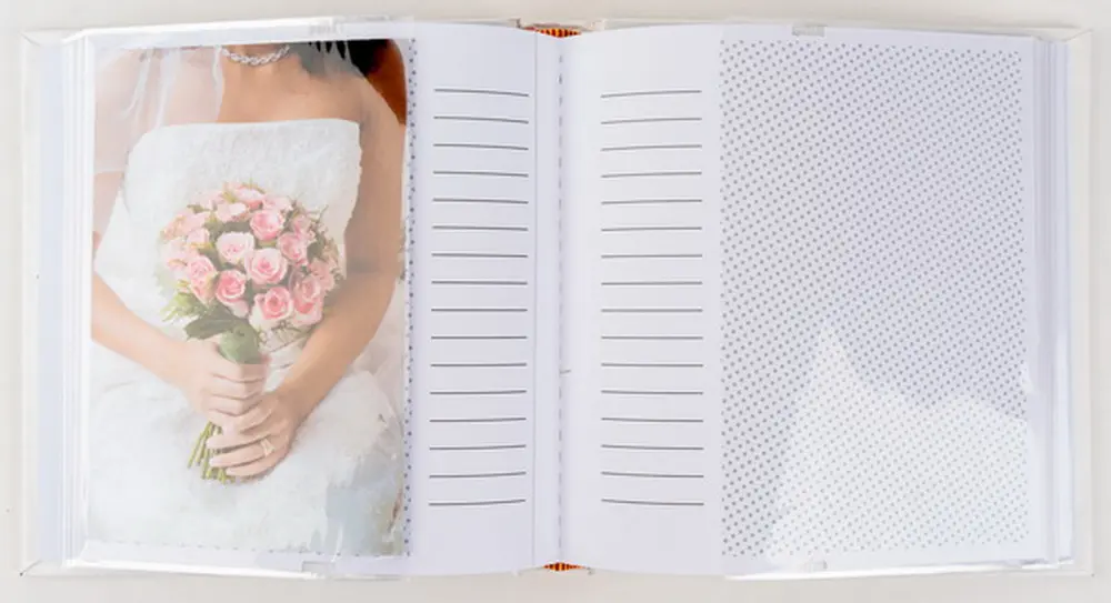 svatební zasunovací fotoalbum, 10x15, 50 foto, rozměr alba 16 x 17 cm, vyměnitelné foto, šitá kniha