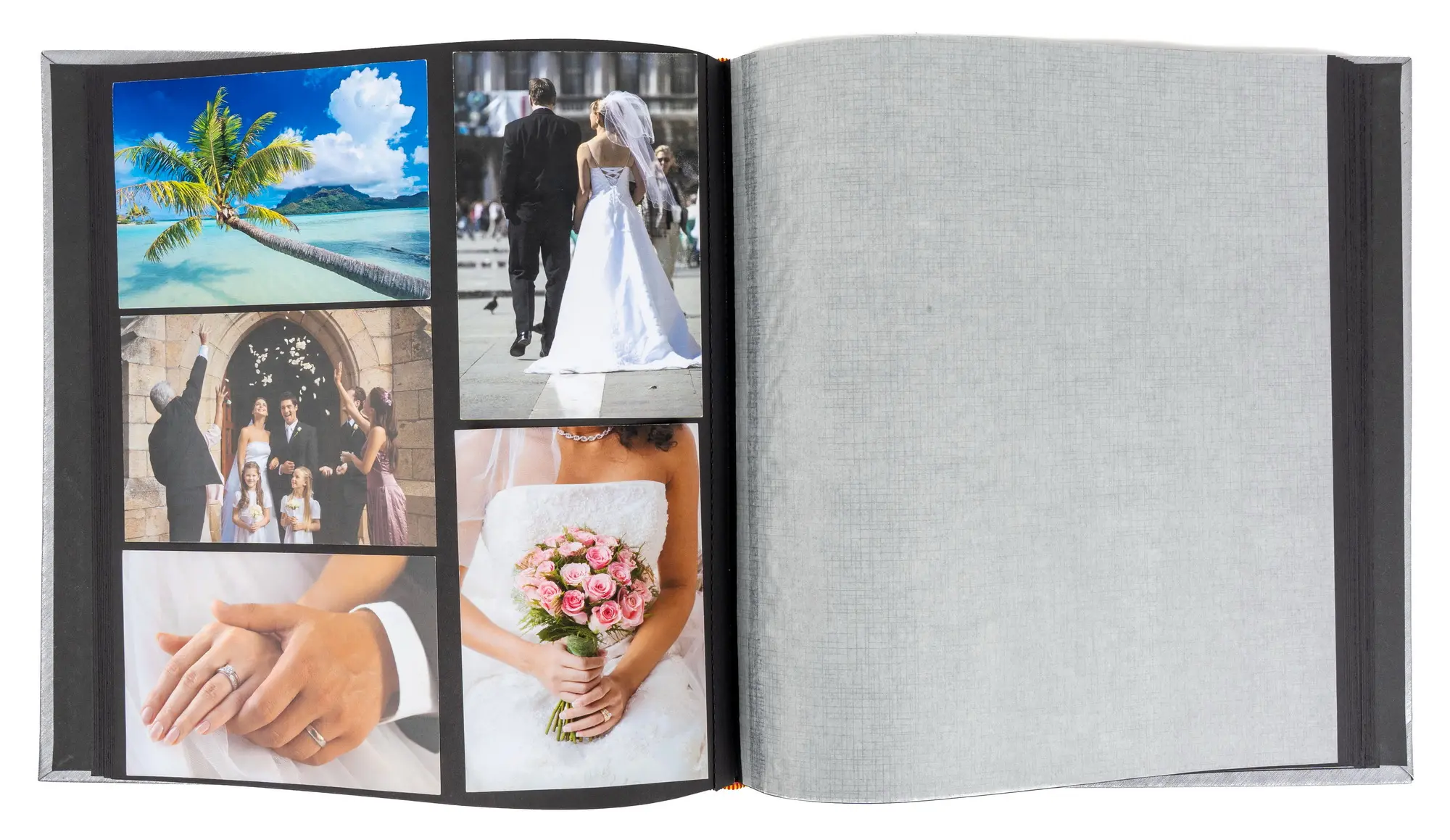 svatební klasické fotoalbum, 60 stran, rozměr alba 31 x 33 cm, rozměr listu 29 x 32 cm, dělící pergamenové listy, šitá kniha