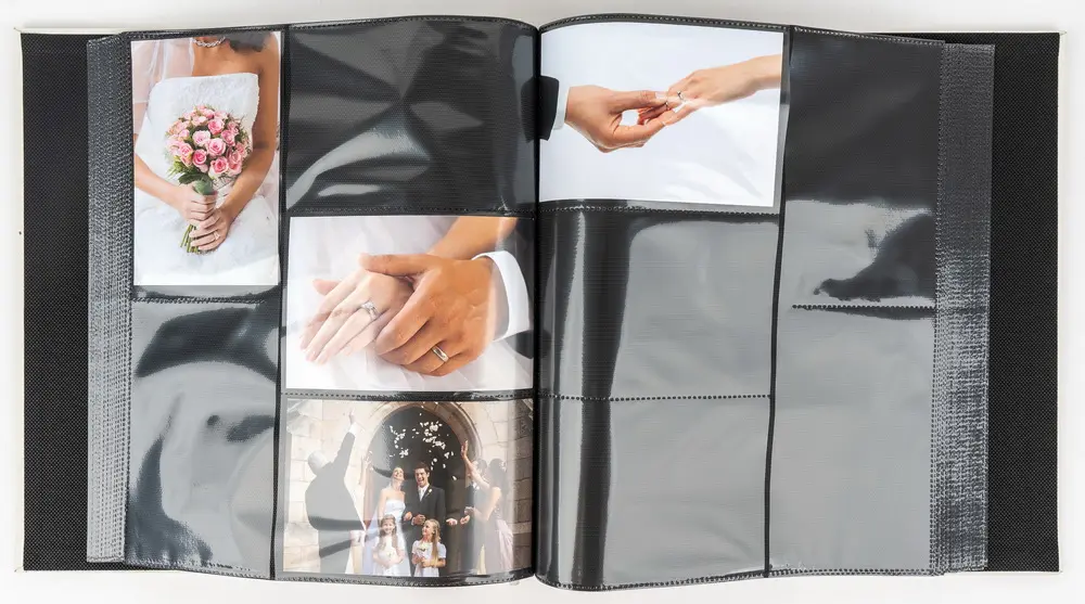 svatební zasunovací fotoalbum, 10x15, 500 foto, rozměr alba 31,5 x 34 cm, černé listy, nýtovaná kniha