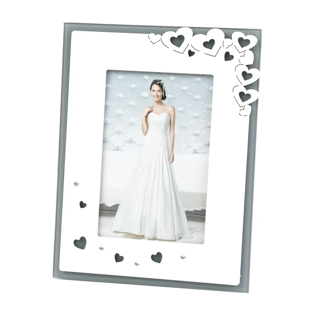 ozdobný rámeček s aplikací, kombinace dřevo a sklo, vhodné na svatební fotografie, foto 10 x 15 cm, rozměr rámečku 16,9 x 21,9 cm, k postavení na výšku, fotografie je krytá sklem
