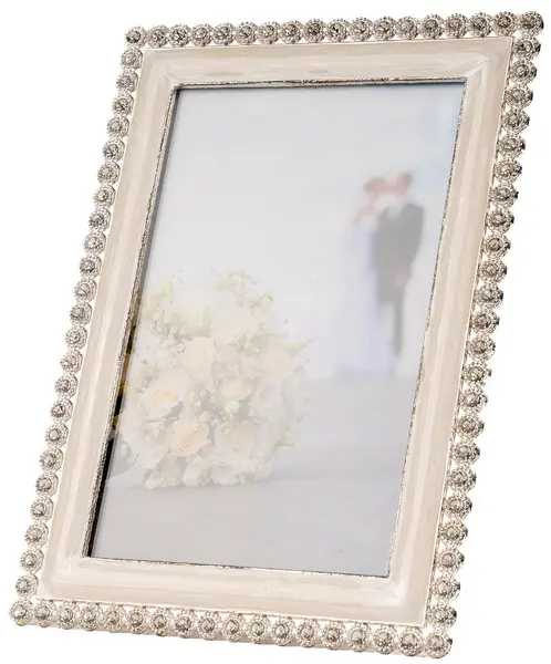 kovový fotorámeček, foto 10 x 15 cm, rozměr rámečku 13 x 18 cm, šířka lišty 2 cm, k postavení vertikálně i horizontálně, fotografie je krytá sklem