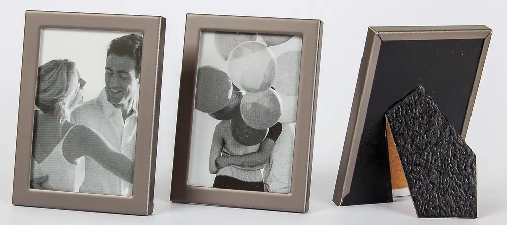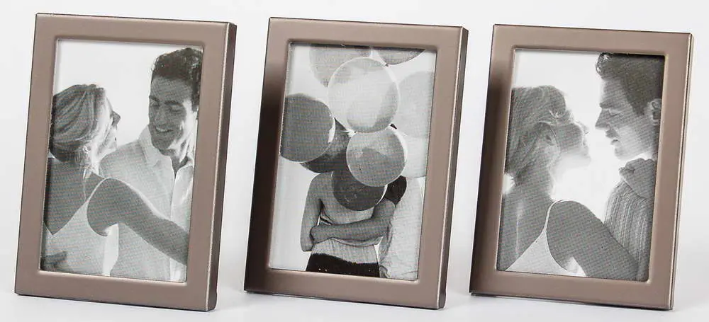 3 kovové fotorámečky, foto 4 x 6 cm, rozměr rámečku 4,8 x 6,5 cm, k postavení, šířka lišty 0,5 cm, fotografie je kryta sklem