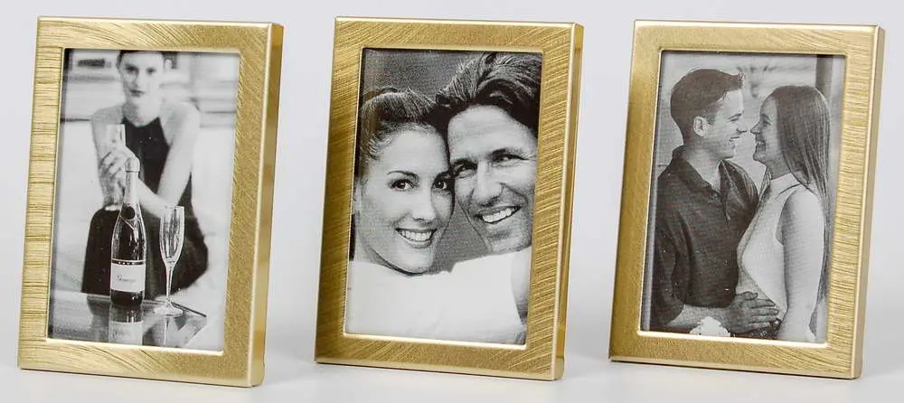 3 kovové fotorámečky, foto 4 x 6 cm, rozměr rámečku 4,8 x 6,5 cm, k postavení, šířka lišty 0,5 cm, fotografie je kryta sklem