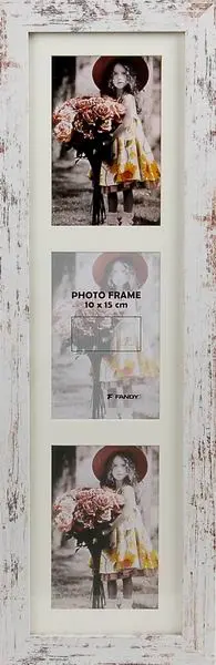 dřevěný rámeček na 3 foto 10 x 15 cm, rozměr rámečku 18,5 x 56,5 cm, k zavěšení vertikálně i horizontálně, šířka lišty 2,8 cm, fotografie krytá sklem, fotografie je krytá sklem