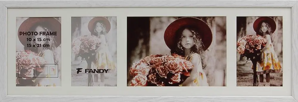 dřevěný rámeček na 3 foto 10 x 15 cm a 1 foto 15 x 21 cm, rozměr rámečku 61,5 x 21 cm, k zavěšení vertikálně i horizontálně, šířka lišty 1,5 cm, fotografie je krytá sklem