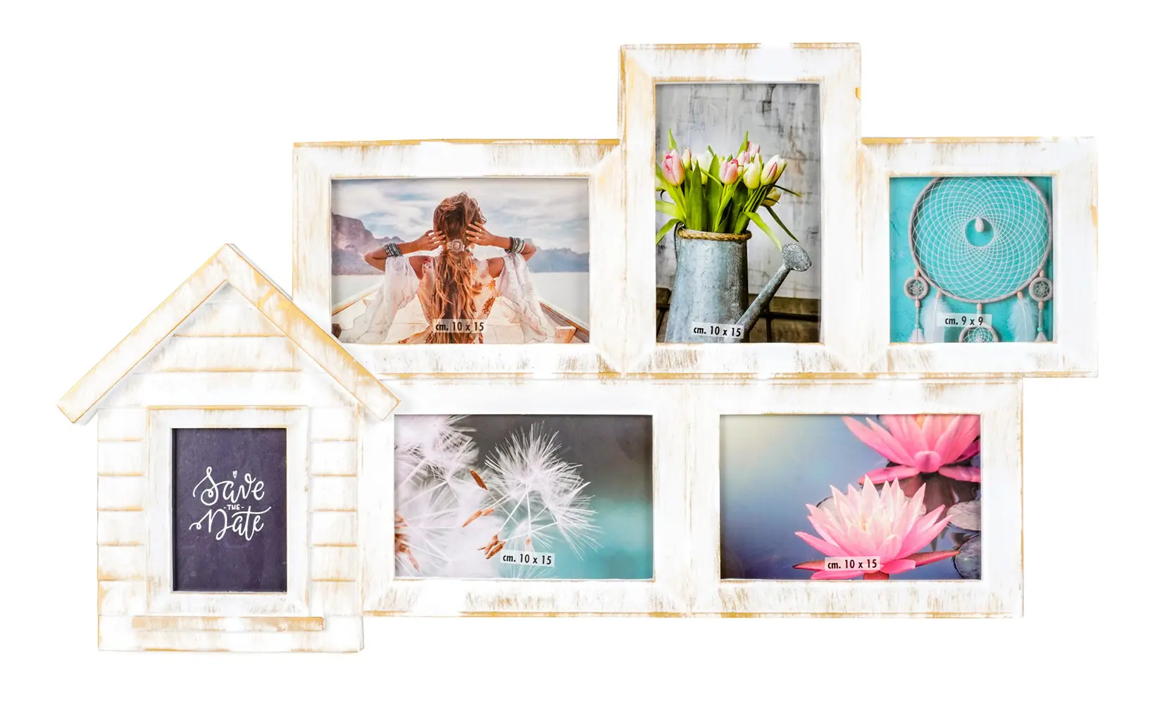 plastový rámeček na 4 foto 10 x 15 cm, 1 foto 9 x 11,5 cm a 1 foto 9 x 9 cm, rozměr rámečku 55 x 32 cm, k zavěšení, fotografie je krytá plexisklem