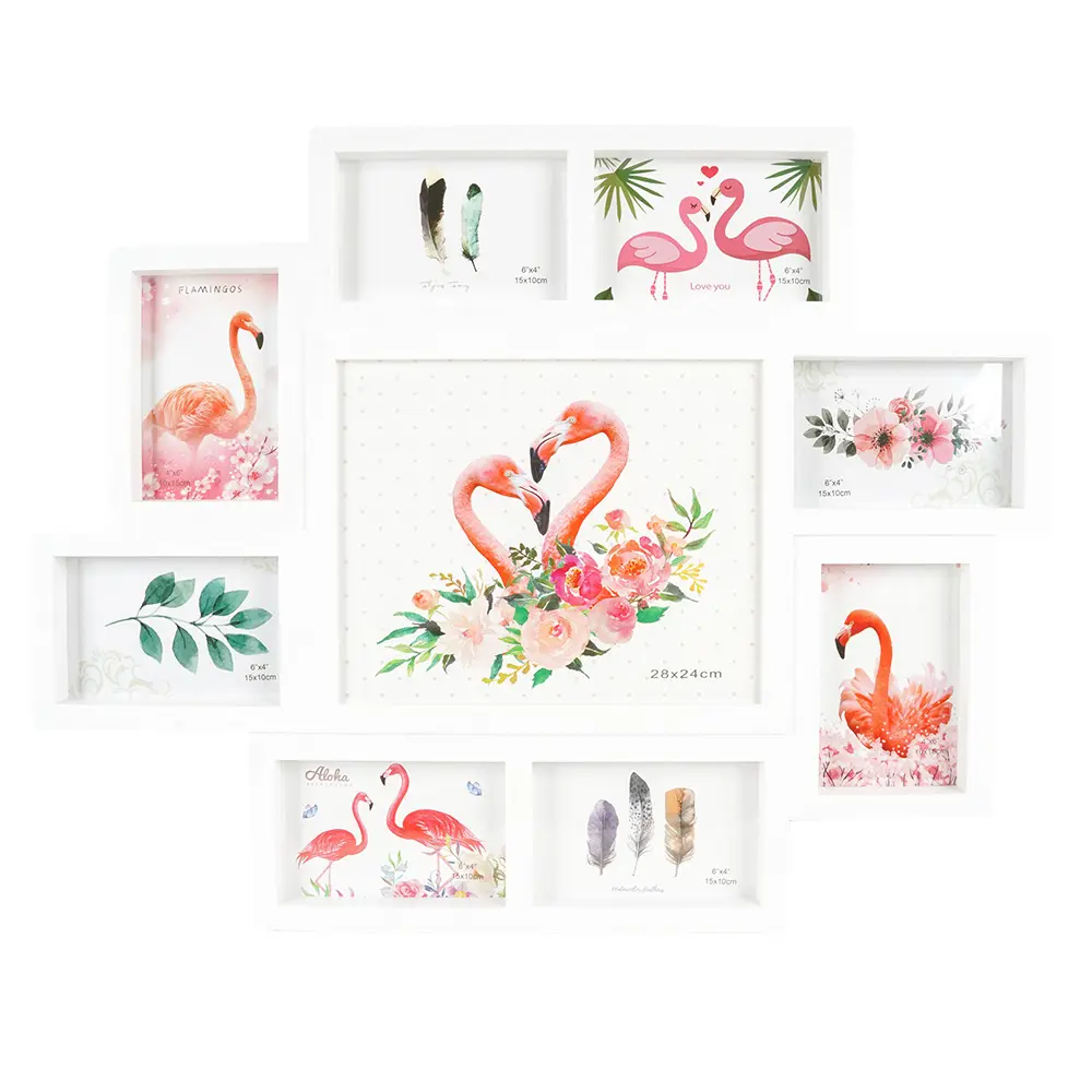 plastový rámeček na 1 foto 28 x 24 cm a 8 foto 10 x 15 cm, rozměr rámečku 61,5 x 48 cm, k zavěšení, fotografie je krytá plexisklem