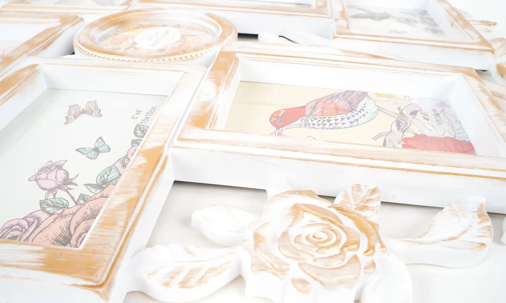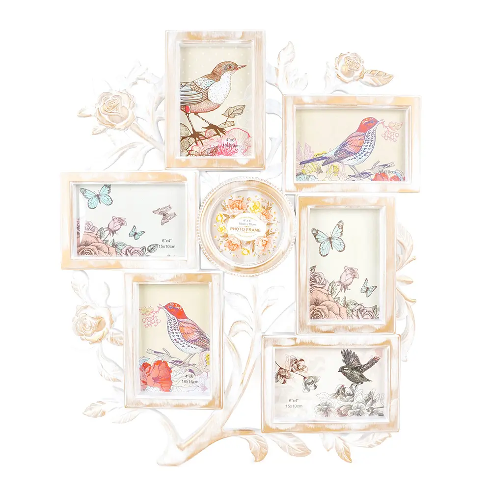 plastový rámeček na 6 foto 10 x 15 cm a 1 foto průměr 10 cm, rozměr rámečku 44 x 54 cm, k zavěšení, fotografie je krytá plexisklem