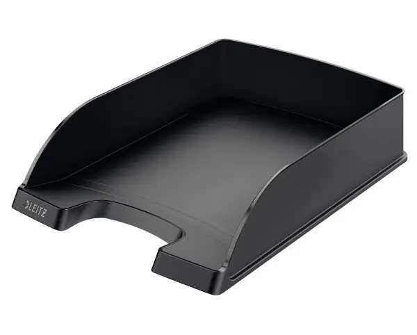 pevný plast • kolmé nebo předsazené stohování • možnost kombinace se zásuvkou Leitz Slim Plus • výřez pro snadný přístup • rozměr 255 x 70 x 360 mm