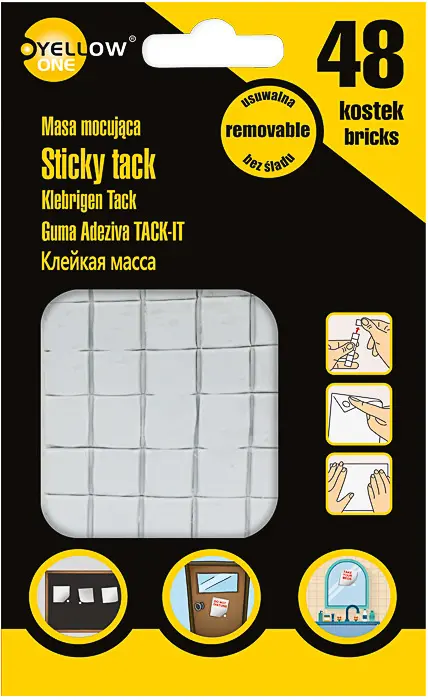 univerzální lepicí guma, nahrazuje připínáček nebo lepicí pásku, lze opakovaně použít, balení obsahuje 50 g gumy - 48 předsekaných čtverečků