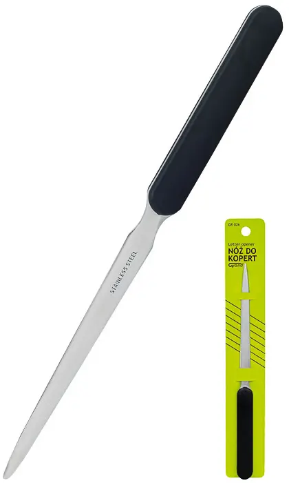 kovový otevírač obálek, plastová madla, délka 19 cm
