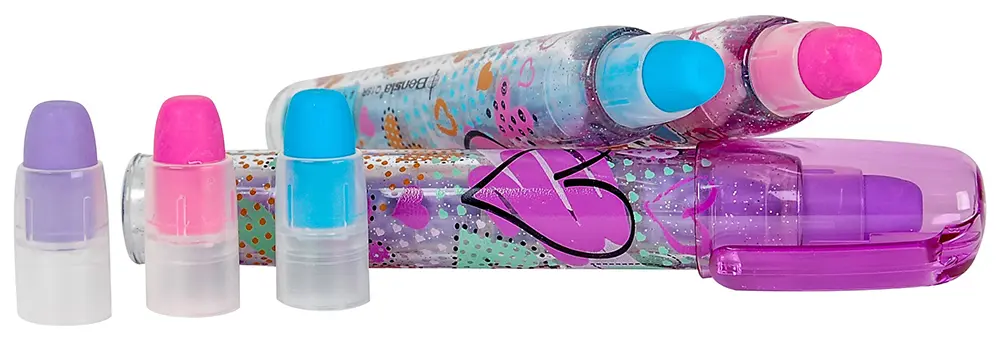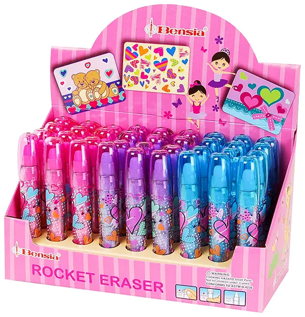 pryž s posuvnými vložkami, tvar pera umožňuje snadné gumování, mix barev