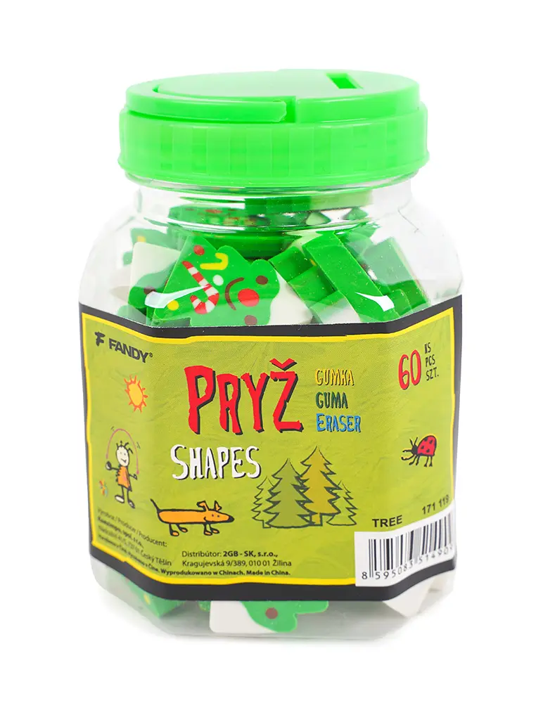 barevná školní pryž, krásné dětské motivy, 60 ks v praktické PVC dóze