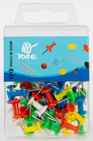 50 ks, 5 nadružených barev v krabičce, průměr 7 mm, hrot 10 mm, vhodné do korkových tabulí