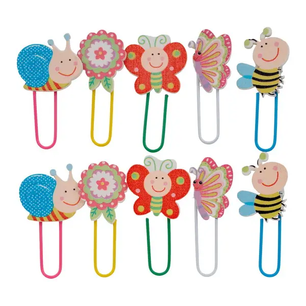 dopisní spony s dřevěnou aplikací, délka spony 4 cm, 10 ks v balení
