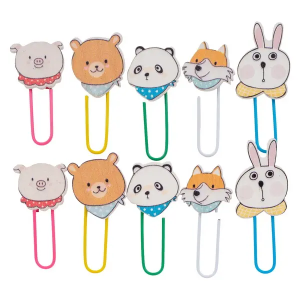 dopisní spony s dřevěnou aplikací, délka spony 4 cm, 10 ks v balení