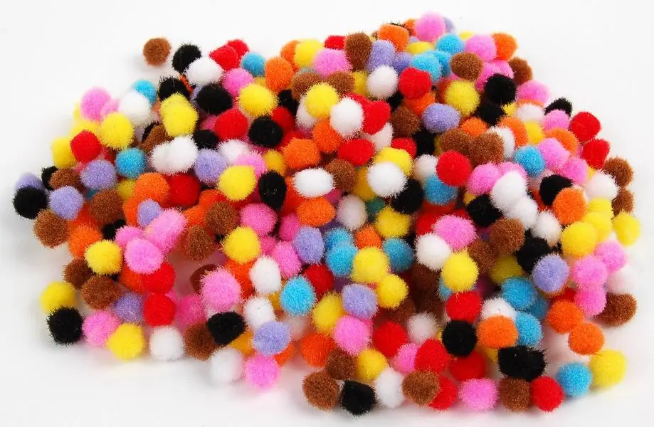 mix barevných chlupatých kuliček pro výrobu figurek či jinou dekoraci, velikost bambulek 7 mm, v balení 200 ks