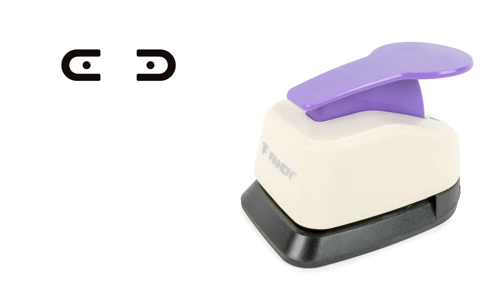 děrovačka dekorační s pružinovým mechanismem pro snadné děrování, vhodné pro zhotovení závěsu na náušnice, děrovačka prosekne i silnější materiál, například 500g papír, velikost výseku 37 mm, blistr