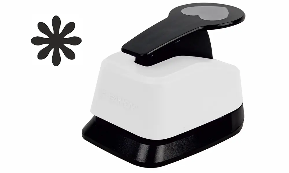 děrovačka dekorační s pružinovým mechanismem pro snadné děrování, vhodné i pro děti, děrovačka prosekne i silnější materiál, například 2mm mechovou pryž a 300g papír, velikost výseku 50 mm, blistr