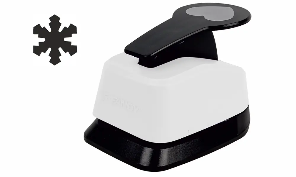 děrovačka dekorační s pružinovým mechanismem pro snadné děrování, vhodné i pro děti, děrovačka prosekne i silnější materiál, například 2mm mechovou pryž a 300g papír, velikost výseku 50 mm, blistr