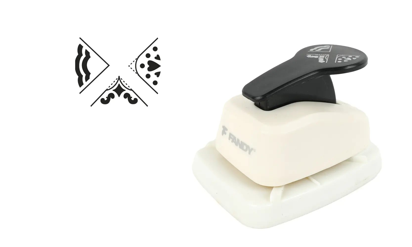 děrovačka dekorační rohová s pružinovým mechanismem pro snadné děrování, vhodné i pro děti, 3 různé vzory, doporučená tloušťka papíru - 80 až 220 g/m2, blistr