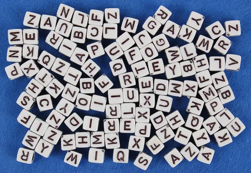 korálky ve tvaru kostek s písmeny, velikost 6 mm, v balení 30 g