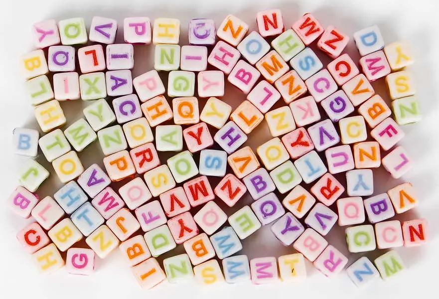 korálky ve tvaru kostek s písmeny, velikost 6 mm, v balení 30 g