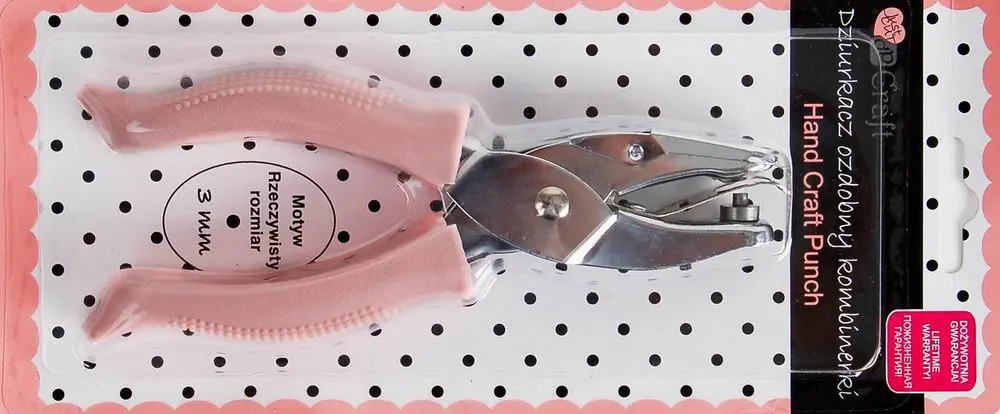 kvalitní děrovací kleště, pro děrování drobných vzorů, ocelová hlava proděraví papír, plast, kůži, plsť a tenký kov, pohodlná gumová rukojeť, úložné prostory na konfety