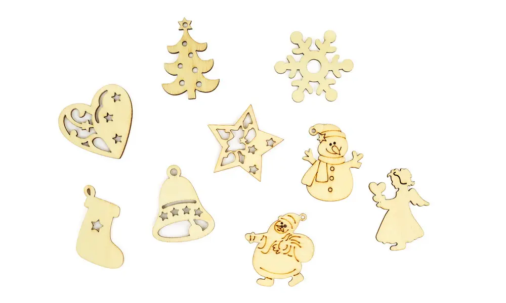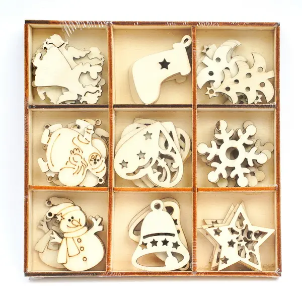 45 ks dřevěné dekorace v krabičce, velikost dekorace cca 2,5 - 3,5 cm