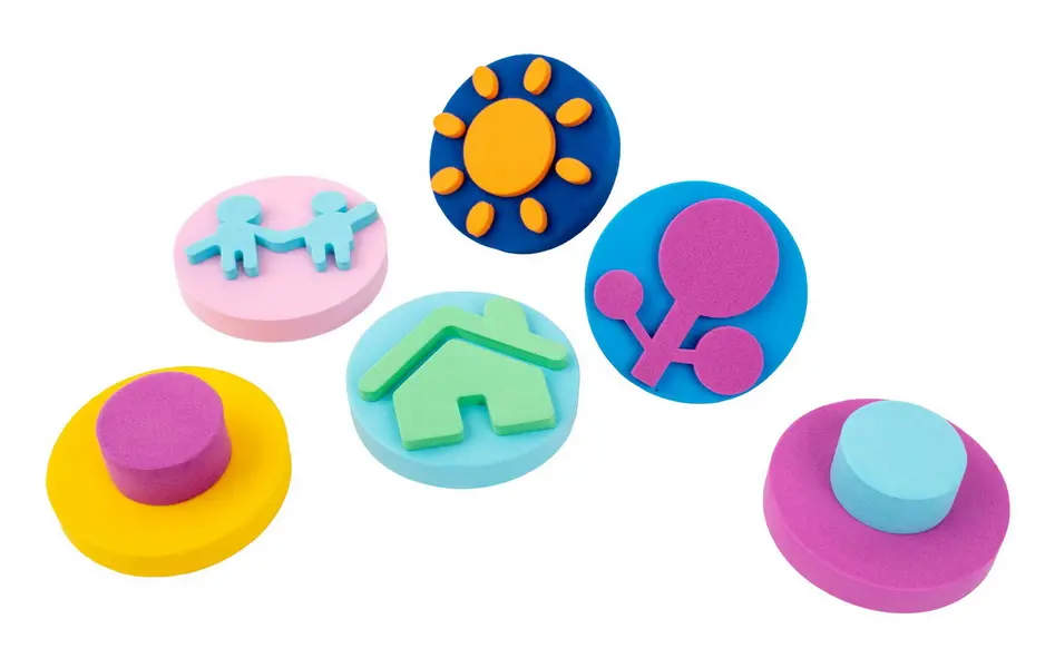 dětská razítka, jednoduchá manipulace, průměr tisku cca 5 cm, 6 různých motivů v 6 barvách