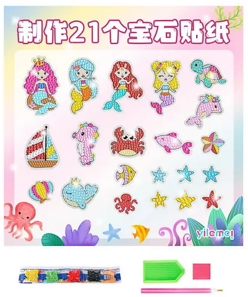samolepící předlohy, rozvíjí trpělivost, sada obsahuje předlohy, akrylové kamínky, rozdělené dle barev, plastovou nádobku pro snadnější manipulaci s kamínky, plastový nástroj pro jejich aplikaci na předlohy