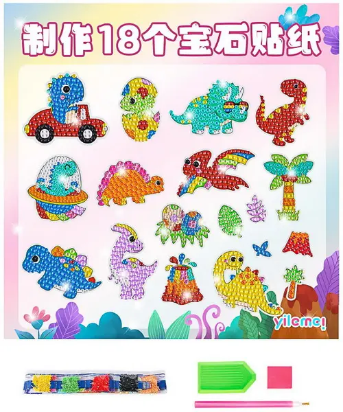samolepící předlohy, rozvíjí trpělivost, sada obsahuje předlohy, akrylové kamínky, rozdělené dle barev, plastovou nádobku pro snadnější manipulaci s kamínky, plastový nástroj pro jejich aplikaci na předlohy