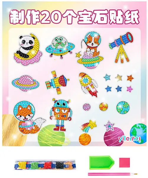 samolepící předlohy, rozvíjí trpělivost, sada obsahuje předlohy, akrylové kamínky, rozdělené dle barev, plastovou nádobku pro snadnější manipulaci s kamínky, plastový nástroj pro jejich aplikaci na předlohy
